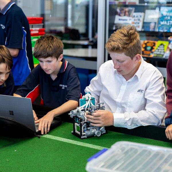 Students learn, during lunch-times and after school, how to use microprocessors, sonic sensors, light sensors and electronic compasses to guide their soccer robots. Trinity teams have attended the Australian National titles on a regular basis.