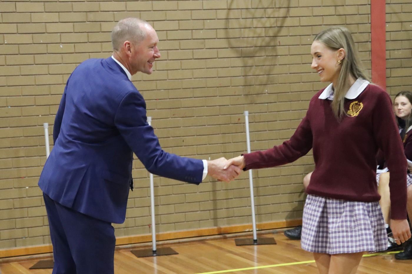 Congratulations to 2025 College Captains Kane and Olivia, and to our Vice Captains Oscar and Jen. Congratulations also to the incoming College Prefects Henry, Charlie, Caitlin, Lily and Bailee; the eight House Captains Toby and Sienna in MacKillop, Jack and Taya for McAuley, Johnny and Bridie for Rice, and Jed and Lily in Glowrey, and our Performing Arts Captains Logan and Bridget.